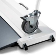 Flache Plattformwaage mit zwei Rampen für bequemes Auffahren und klappbarem Stativ für die Montage des Anzeigegeräts. Zwei Transporträder und ein Tragegriff sorgen für müheloses Verschieben. Energieversorgung durch Netz- oder Akkubetrieb – damit kann die Waage überall in Betrieb genommen werden.