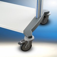 - 1 Fahrgestell mit 4 Rollen, Ø 125 mm, 2 feststellbar, elektrisch leitfähig, mit Wandabweisern