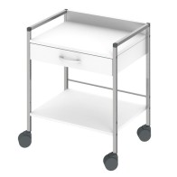 Die Wagen zeichnen sich durch ein stabiles Fahrgestell mit kunststoffbeschichteten Vierkantstahlrohrbügeln in weiß aus, verfügen über pflegeleichte Platten, Schubladen mit leichtgängiger Kugel-Teleskop-Führung und Einrastmechanismus.